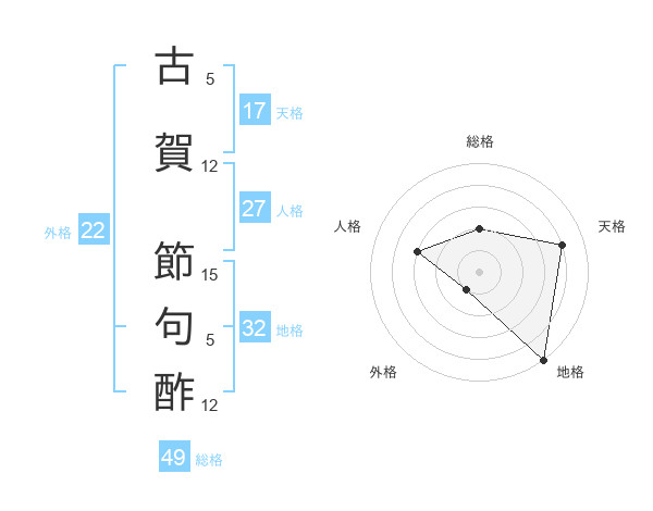 古賀 節句酢さんの総格は49画の2点!