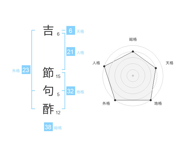 吉 節句酢さんの総格は38画の4点!