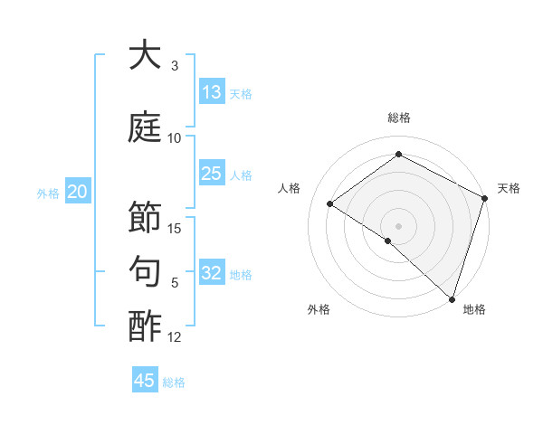 大庭 節句酢さんを姓名の画数から五運を鑑定