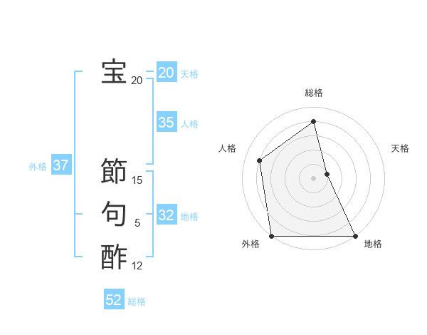 宝 節句酢さんの総格は52画の4点!