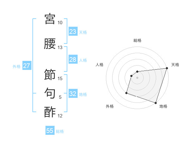 宮腰 節句酢さんの総格は55画の1点!