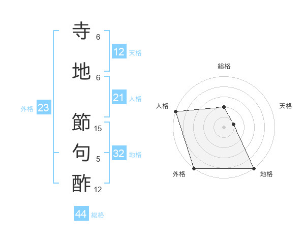 寺地 節句酢さんの総格は44画の2点!
