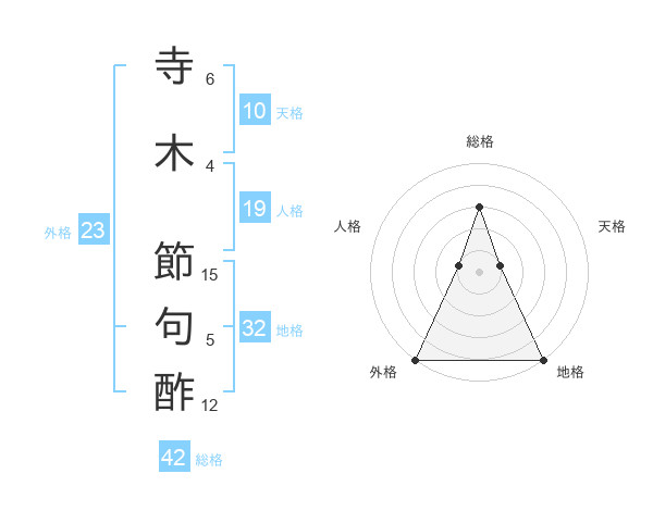 寺木 節句酢さんを姓名の画数から五運を鑑定