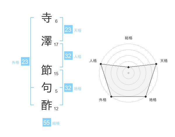 寺澤 節句酢さんを姓名の画数から五運を鑑定