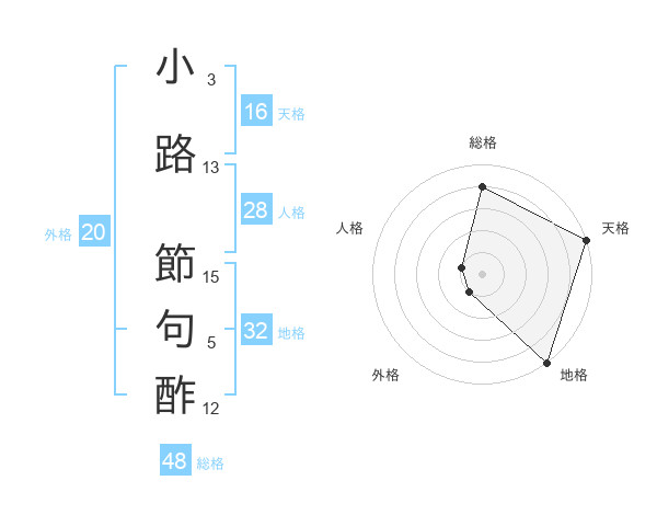 小路 節句酢さんの総格は48画の4点!