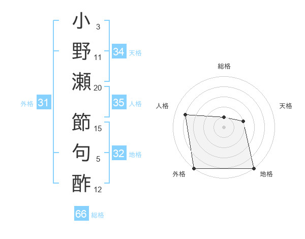 小野瀬 節句酢さんを姓名の画数から五運を鑑定