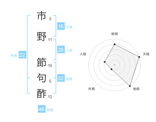 市野 節句酢さんを姓名の画数から五運を鑑定