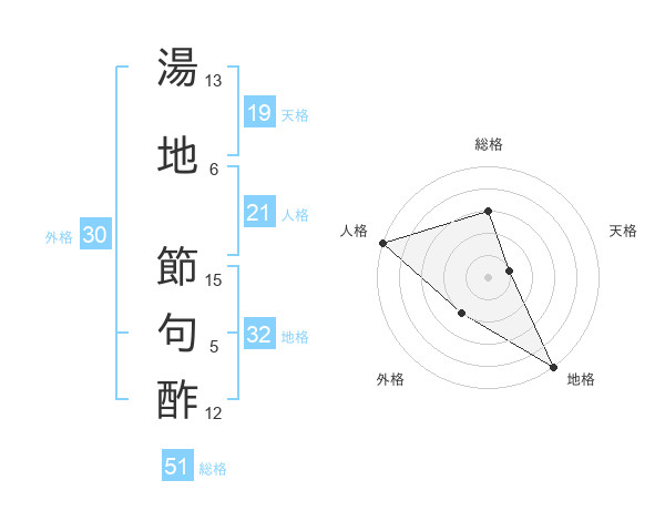 湯地 節句酢さんを姓名の画数から五運を鑑定
