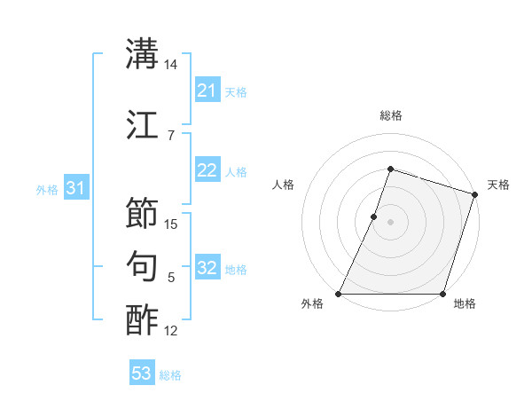 溝江 節句酢さんの総格は53画の3点!