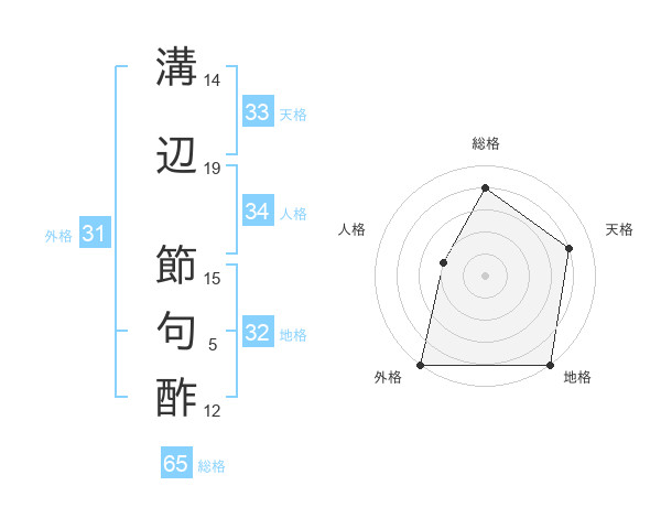 溝辺 節句酢さんの総格は65画の4点!