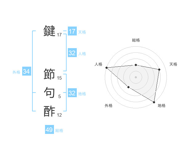 鍵 節句酢さんを姓名の画数から五運を鑑定