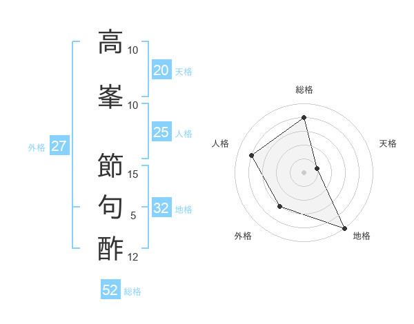 高峯 節句酢さんを姓名の画数から五運を鑑定