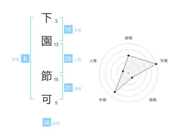 下園 節可さんの外格は8画の4点!