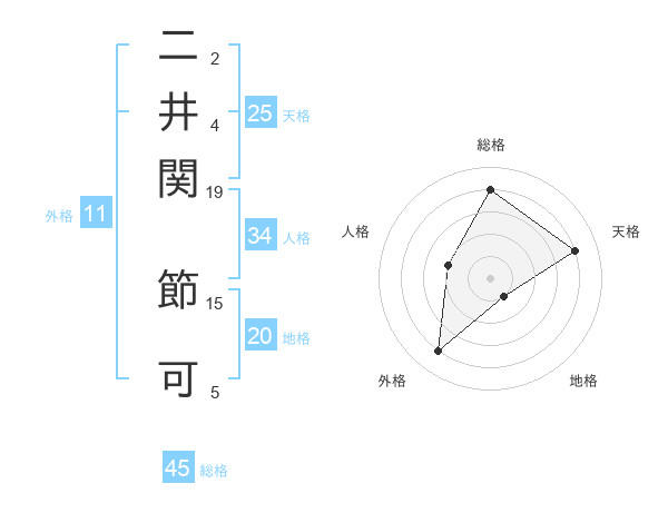 二井関 節可さんの天格は25画の4点!