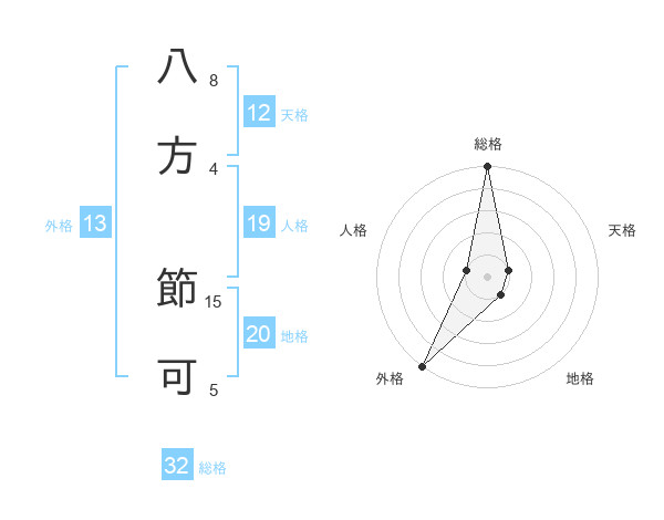 八方 節可さんの総格は32画の5点!
