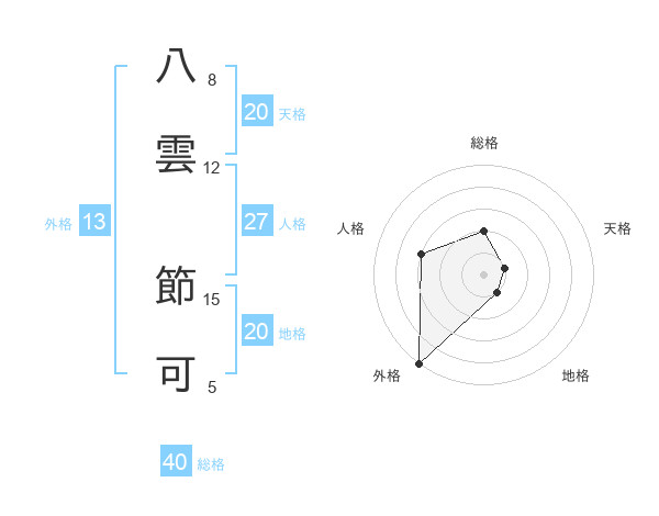 八雲 節可さんの外格は13画の5点!