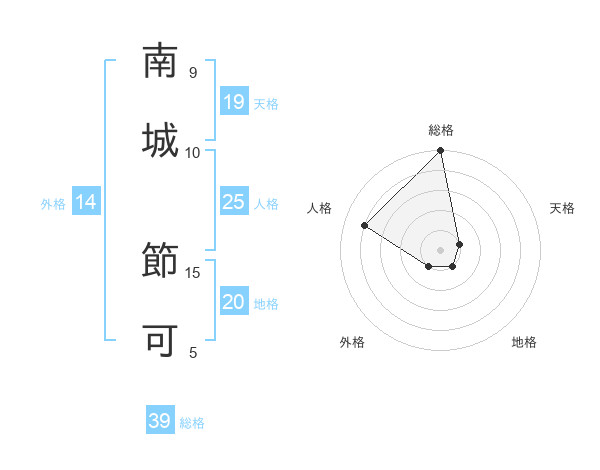南城 節可さんの総格は39画の5点!