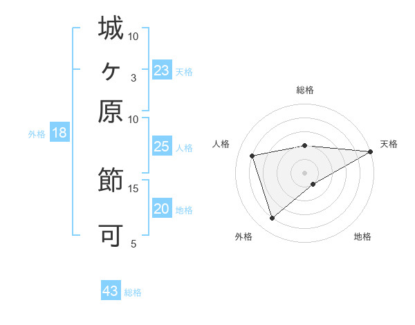 城ヶ原 節可さんの総格は43画の2点!
