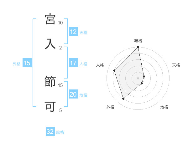 宮入 節可さんの総格は32画の5点!