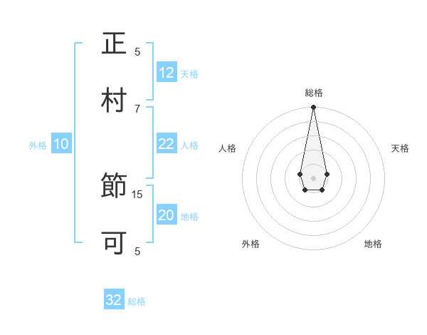 正村 節可さんの総格は32画の5点!