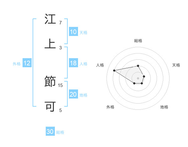 江上 節可さんの総格は30画の2点!