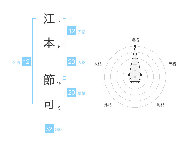 江本 節可さんの総格は32画の5点!