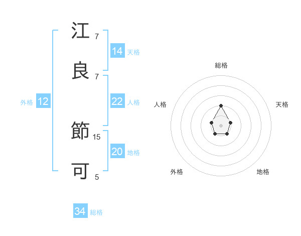 江良 節可さんの総格は34画の2点!
