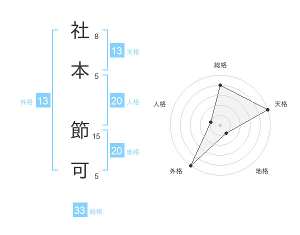 社本 節可さんの天格は13画の5点!