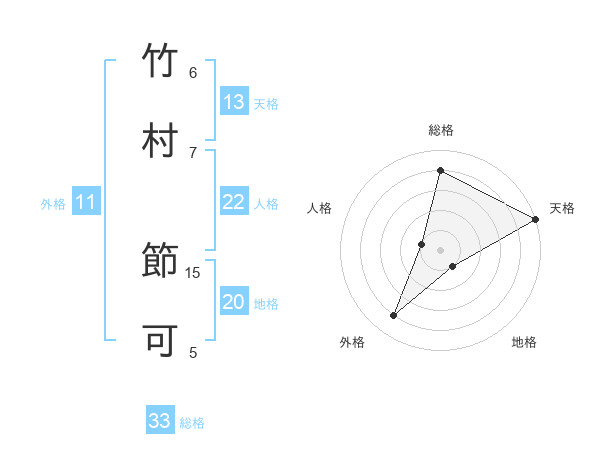 竹村 節可さんの天格は13画の5点!