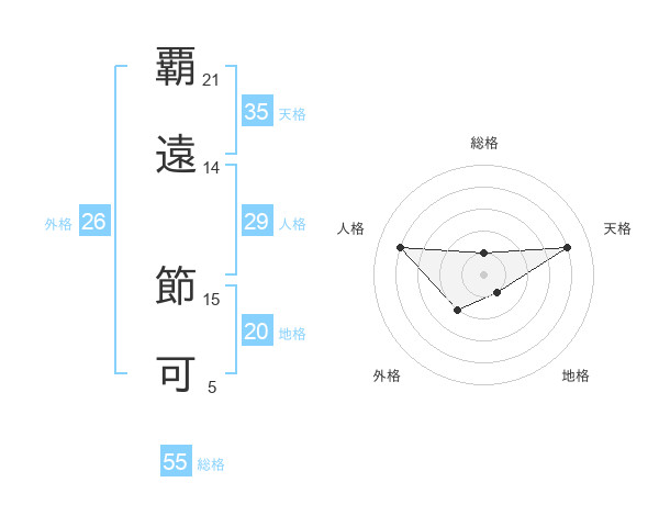 覇遠 節可さんの総格は55画の1点!