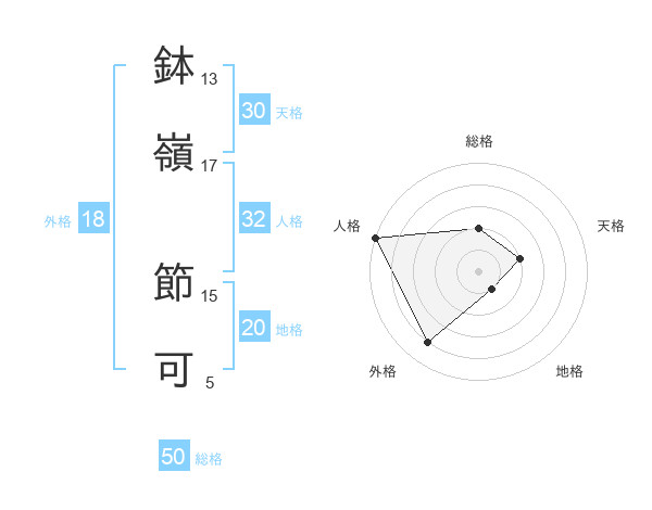 鉢嶺 節可さんの総格は50画の2点!