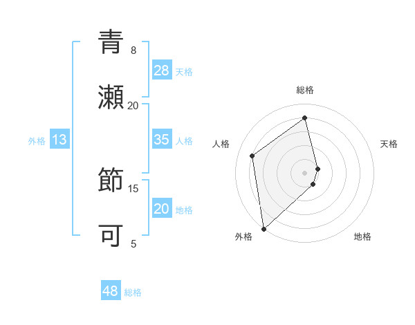 青瀬 節可さんの総格は48画の4点!