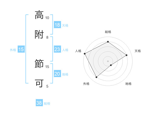 高附 節可さんの総格は38画の4点!