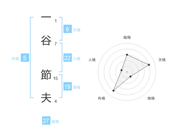 一谷 節夫さんを姓名の画数から五運を鑑定