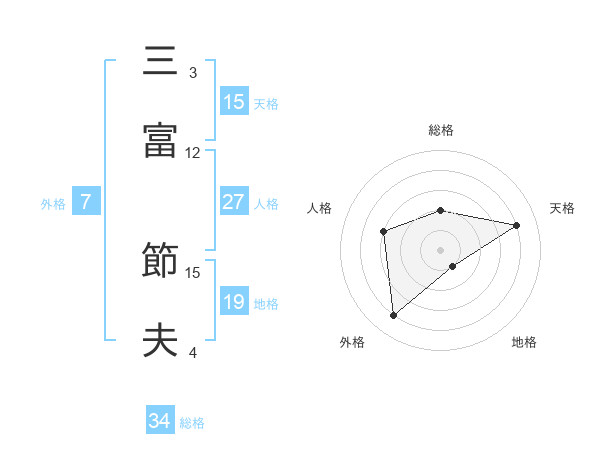 三富 節夫さんの天格は15画の4点!