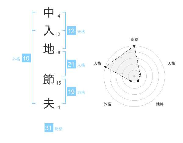 中入地 節夫さんの総格は31画の5点!