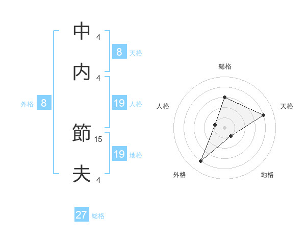 中内 節夫さんの総格は27画の3点!