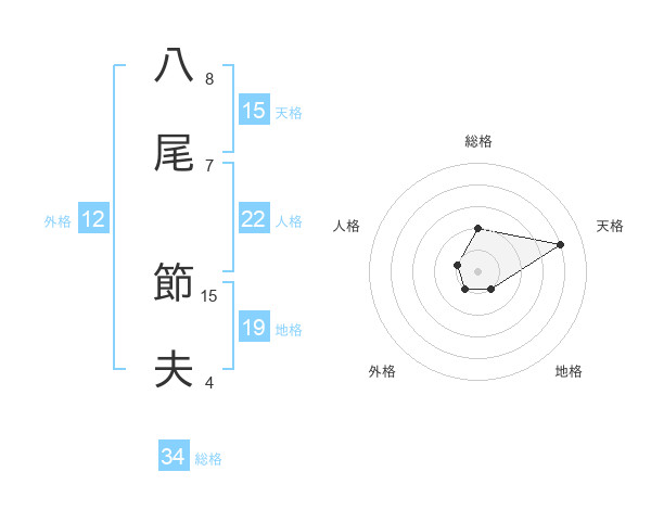 八尾 節夫さんを姓名の画数から五運を鑑定