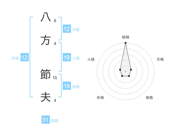 八方 節夫さんの総格は31画の5点!