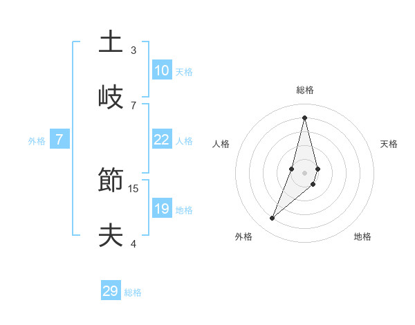 土岐 節夫さんを姓名の画数から五運を鑑定