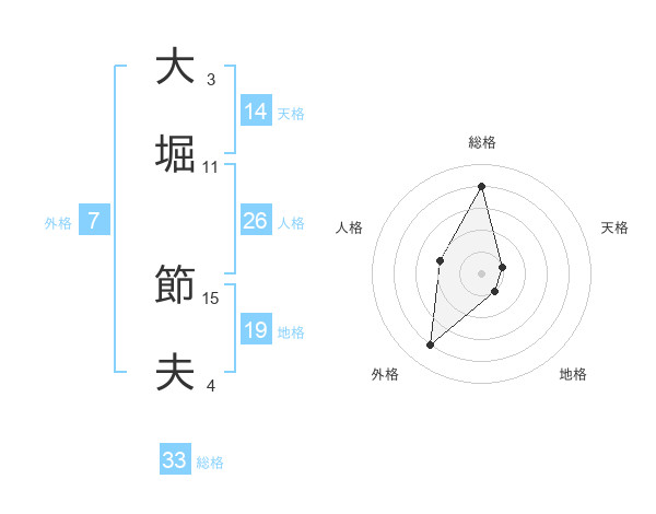 大堀 節夫さんの総格は33画の4点!