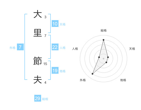 大里 節夫さんの総格は29画の4点!
