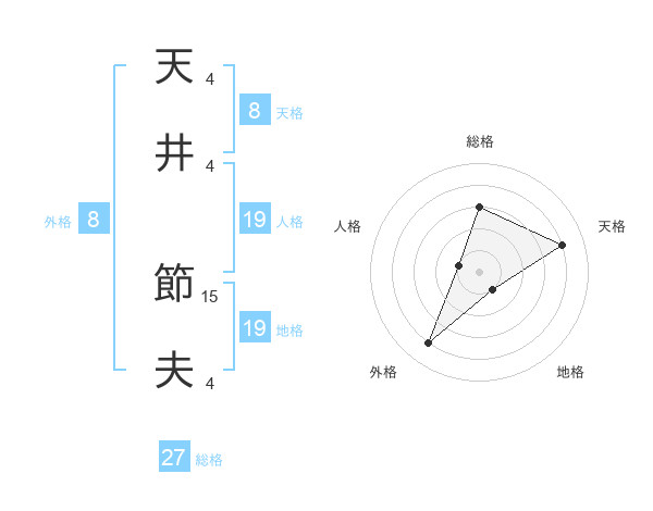 天井 節夫さんの総格は27画の3点!