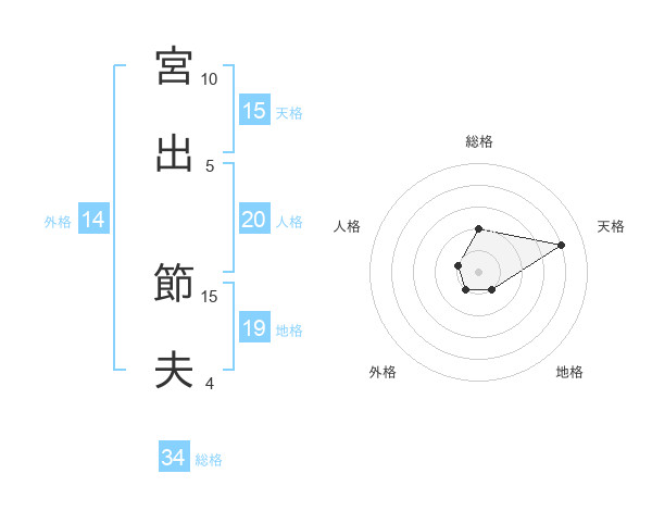 宮出 節夫さんの天格は15画の4点!