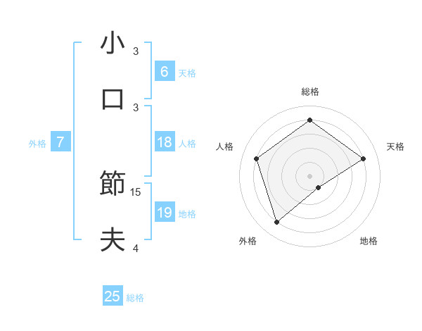 小口 節夫さんの総格は25画の4点!