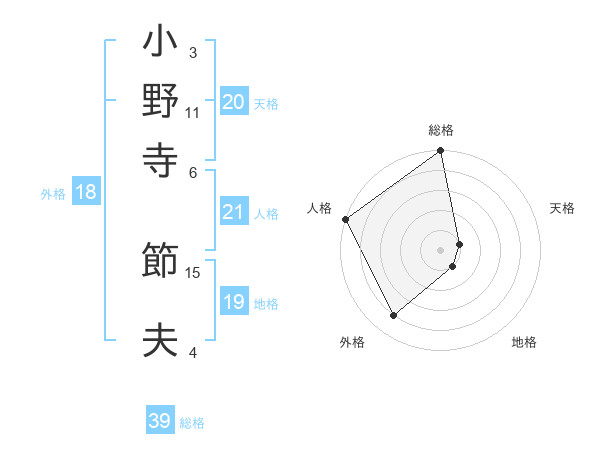 小野寺 節夫さんの総格は39画の5点!