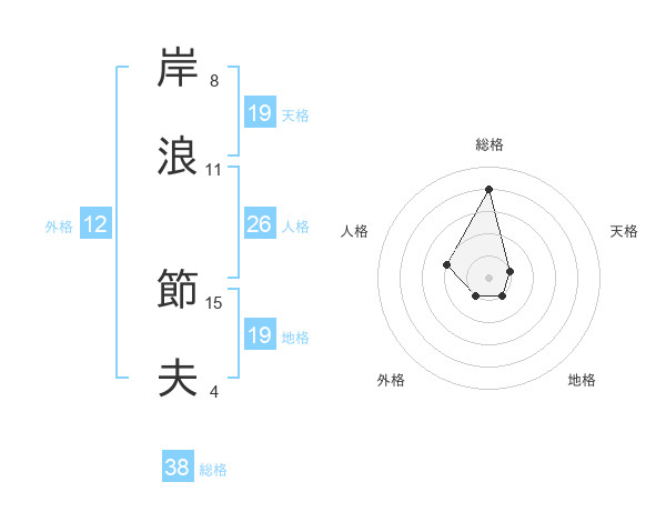 岸浪 節夫さんの総格は38画の4点!