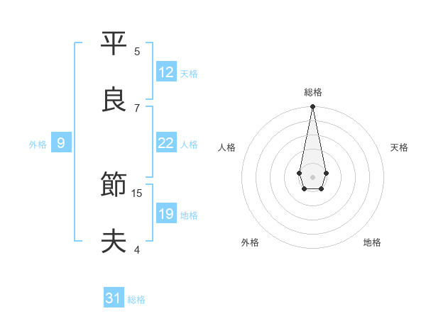平良 節夫さんの総格は31画の5点!