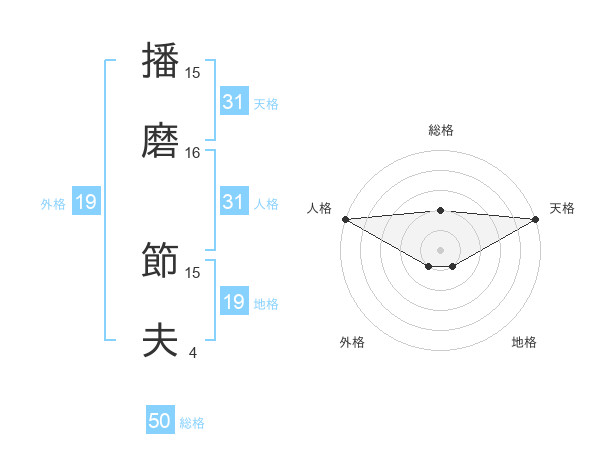 播磨 節夫さんを姓名の画数から五運を鑑定