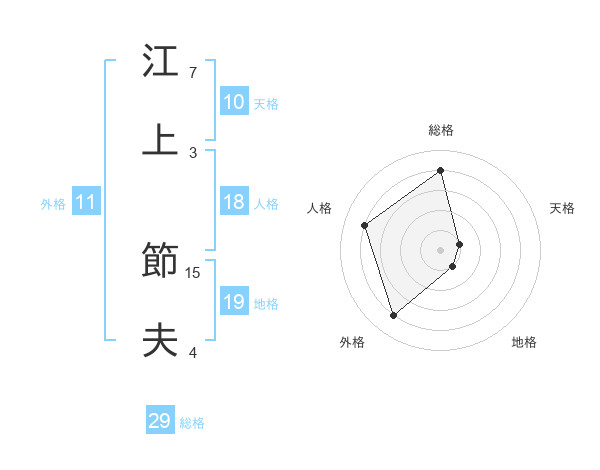 江上 節夫さんの総格は29画の4点!